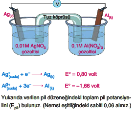 Yukarıdaki pil sisteminin başlangıç potansiyeli kaç volttur?